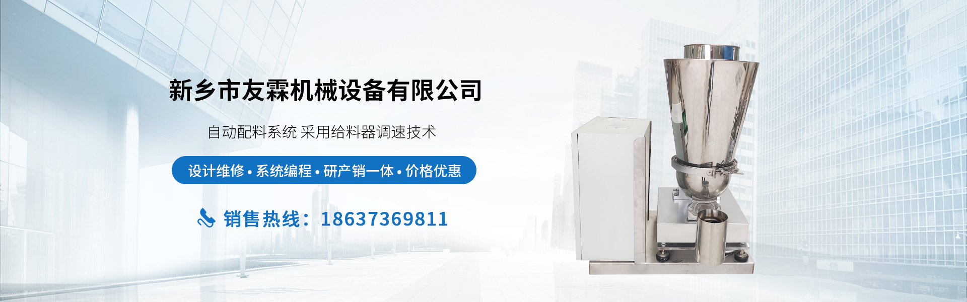新鄉(xiāng)市友霖機(jī)械設(shè)備服務(wù)有限公司是從事自動(dòng)化微計(jì)量配料機(jī);物料輸送系統(tǒng)、失重式喂料系統(tǒng)、計(jì)量配料系統(tǒng)的設(shè)計(jì)。生產(chǎn)制造:失重式喂料機(jī)、體積式喂料機(jī)、液體稱(chēng)、添加劑配料機(jī)、及工業(yè)電氣自動(dòng)化控制系統(tǒng)設(shè)計(jì)制作與自動(dòng)化維修調(diào)試的機(jī)電服務(wù)公司。公司坐落于河南新鄉(xiāng)衛(wèi)輝東開(kāi)發(fā)區(qū)。